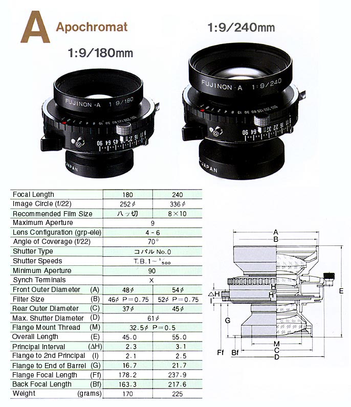 A Lens Specs - Fujinon Large Format Lenses - Mar-1997